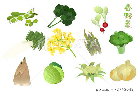 水彩で描いた色々な野菜のイラスト 背景色あり