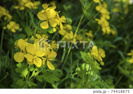 満開のクサノオウのクローズアップ