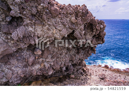 海岸 磯 岩 青空 タライ岬 群青色