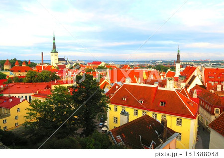 エストニア・タリン旧市街の夕暮れと赤い屋根の美しい街並み