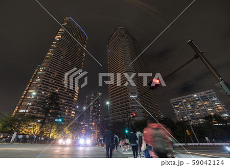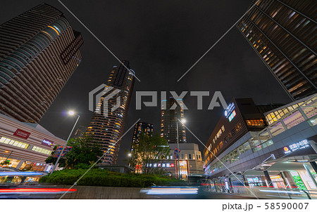 日本の川崎都市景観 台風19号の影響で、停電となっている武蔵小杉のタワーマンション