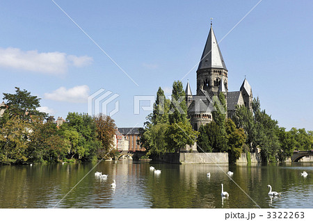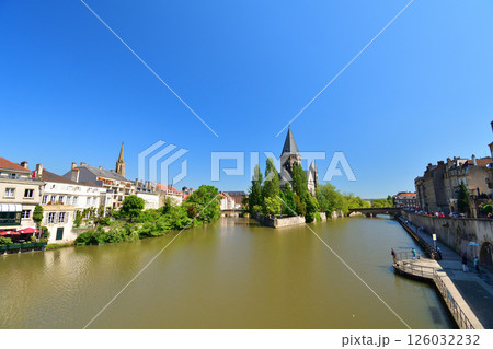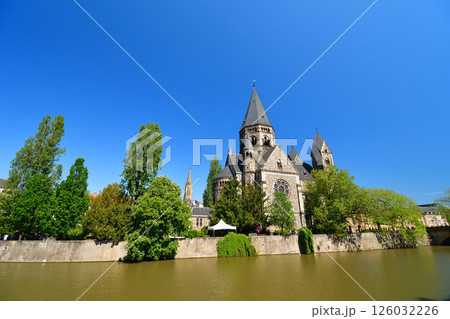 メッス、フランス。モーゼル川沿いから見たタンプル・ヌフ。2024年5月9日撮影。