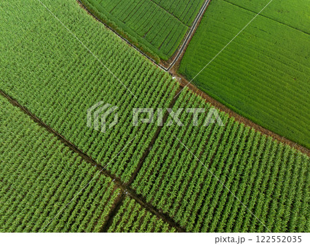 空撮「埼玉県」夏の田んぼを上空から眺める