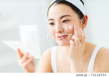 女性のスキンケアと洗顔 シンプルでお洒落な線画イラスト