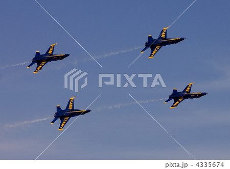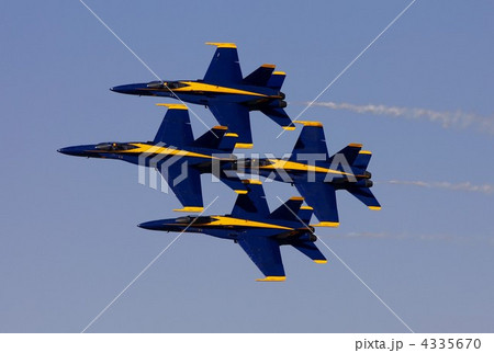 アメリカ海軍曲技飛行チーム、ブルーエンジェルスによる4機ダイアモンド編隊による華麗な曲技飛行
