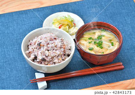 雑穀ごはん(黒米・発芽玄米、キヌア、黒豆、ごま、きび等)粗食、健康食、ダイエット食、和食のイメージ。