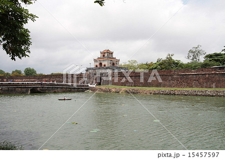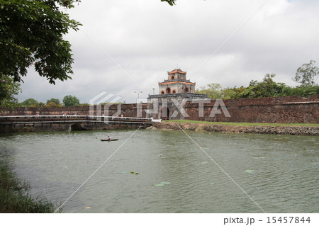 ベトナム中部の世界遺産の街フエ 阮朝王宮水面に映る左廡
