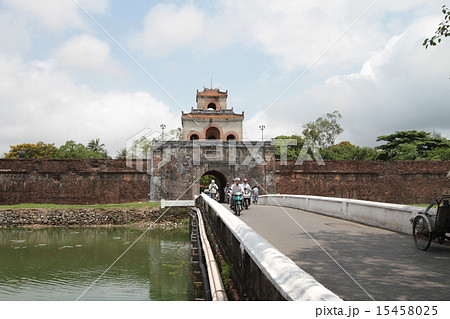 ベトナム中部の世界遺産の街フエ 阮朝王宮 堀に映る王宮門