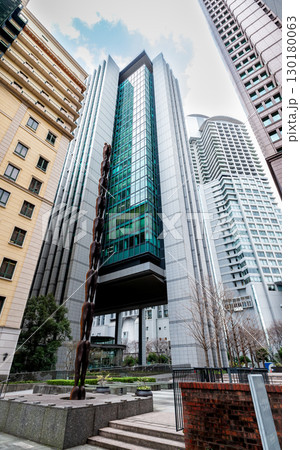 大阪北区の街角の風景、超高層ビル、3月7日、日本