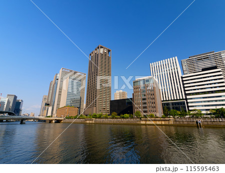 大阪中之島 高層ビル群と堂島川に架かる田蓑橋