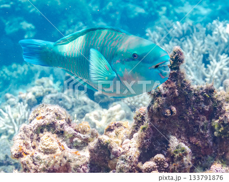 美しいヒブダイ。美しいサンゴ礁と熱帯魚の群れ。 嘉比島沖縄県 島尻郡慶良間諸島座間味島-2025