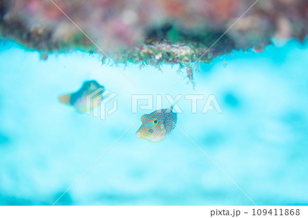 水中洞窟のイシガキフグ、キンセンイシモチ他群れ。ヒリゾ浜中木南伊豆町伊豆半島静岡県2024