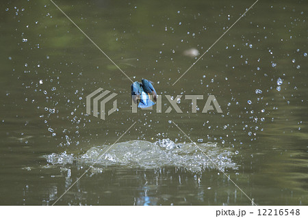 精悍なダイブ! 一直線に飛び出すカワセミです