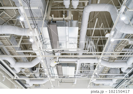 空調ダクトがむき出しになった天井