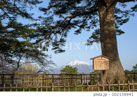 春の朝 弘前城本丸から岩木山を望む 青森県