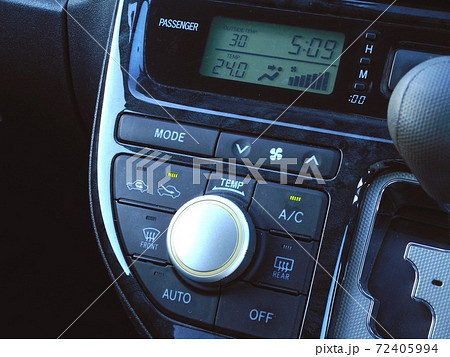 インストルメントパネルのデジタル時計とエアコンの表示画面