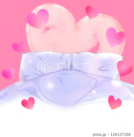 ダブルベッドの背景 ハート
