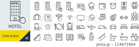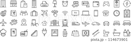 ベクターの宿泊に関する線画アイコンセット