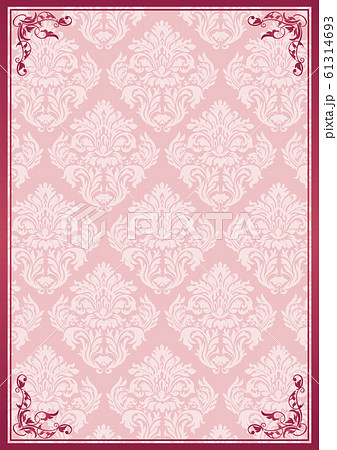 ダマスク柄背景とアンティークのフレームのテンプレート・フォーマット_A4サイズピンク系