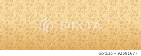 ダマスク柄背景とアンティークのフレームのテンプレート・フォーマット_A4サイズ イエロー系