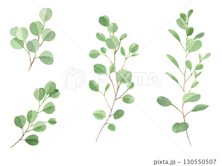 ユーカリ ポポラスの水彩イラストセット ベクター