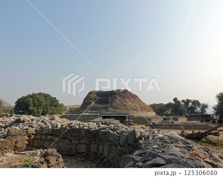 ガンダーラの東に位置するパキスタンのタキシラ遺跡にある2500年前のアショーカ王時代に建てられた仏塔