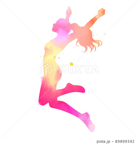 Watercolor of woman jumping into the air isolated on white background with clipping path. Self-care concept.