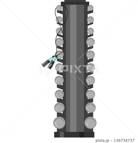 Flat dumbbell rack sticker with vibrant weights for gym and fitness. Essential sport equipment for workout, weightlifting, and strength exercise. Perfect accessory healthy lifestyle gym training.
