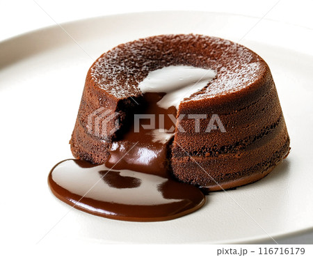 温かいチョコレートが流れるフォンダンショコラ 白背景
