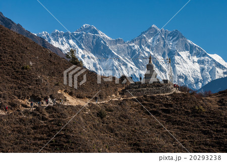 Buddhist stupa with Lhotse wall and Mt. Everest