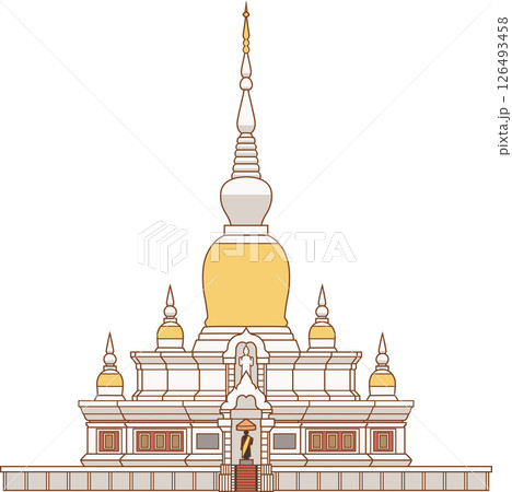 Illustration of Phra That Na Dun, a stupa in Maha Sarakham Province, Thailand.