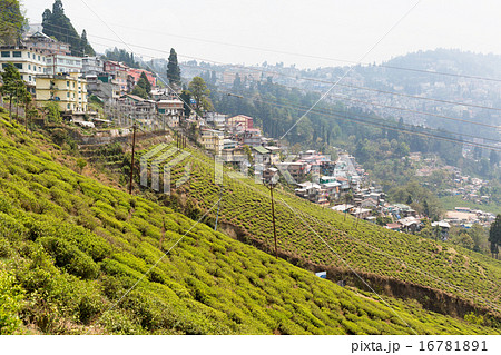 インド ダージリンの茶畑と町並み