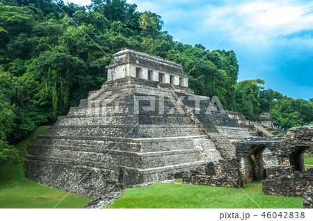 Ancient stepped pyramid at the pre-Columbian Maya civilization, Palenque, Chiapas, Mexico