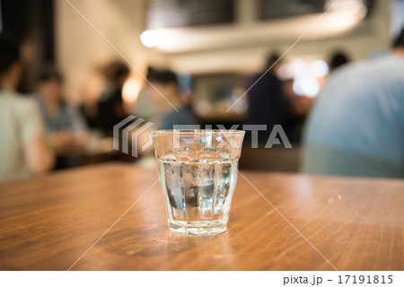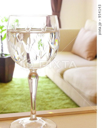 水が入った透明グラス。部屋、キッチン、おうち時間。