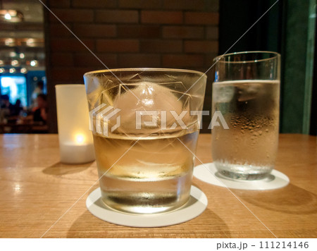 ダイニングバーでウイスキーのロックをゆったりと味わう