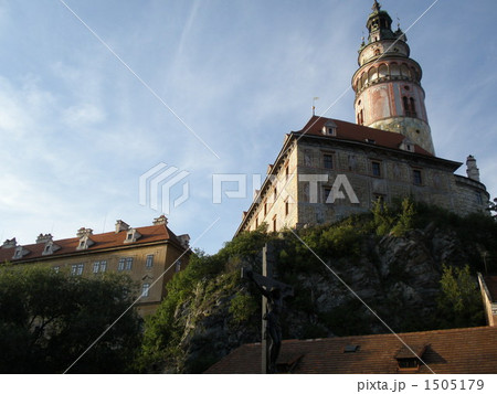 キリストの磔刑像とチェスキークルムロフ城のベルグフリード塔