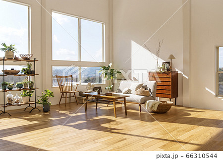 明るいリビングルーム 自然光あふれる部屋 フローリングの住宅