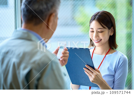 オフィスでアルコール検査するドライバーとビジネスウーマン