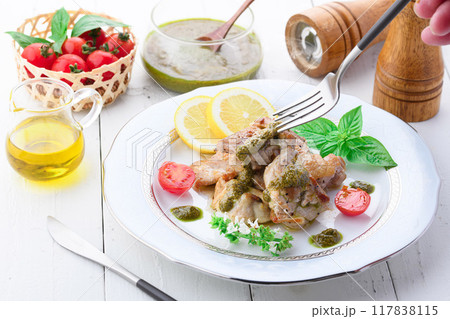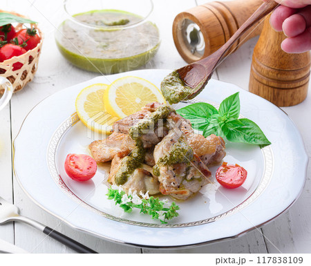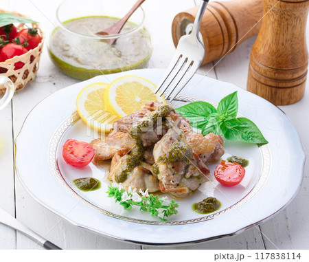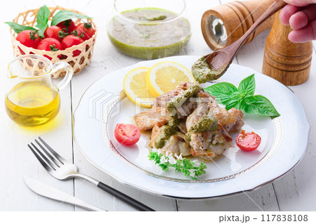 鶏肉のジェノベーゼソテー ( チキンソテー ジェノベーゼソース )