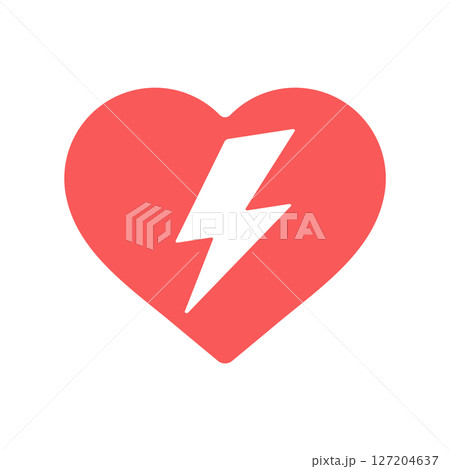 赤いハートに雷マークのアイコン - ショックや 胸が痛い、心室細動や除細動・AEDのイメージ素材