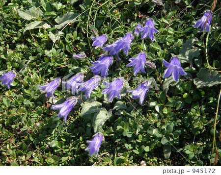 高山帯や北海道に分布するチシマギキョウの紫色の花・クローズアップ