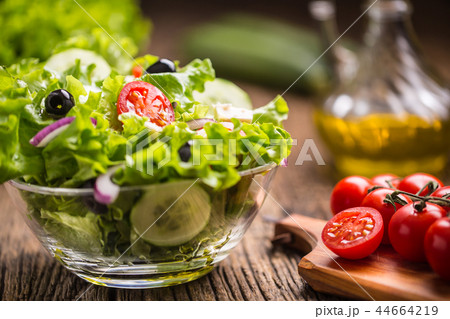 Delicious healthy crispy lettuces mix for salad in a deep cooking bowl before filling with sauce