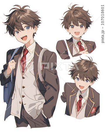 男子高校生のキャラクターシート デフォルメイラスト(AI生成画像)