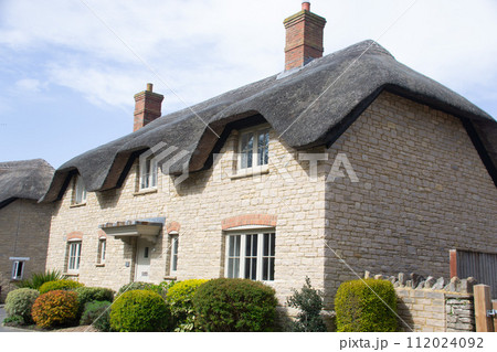 ゴッドヒル村の茅葺屋根の家
