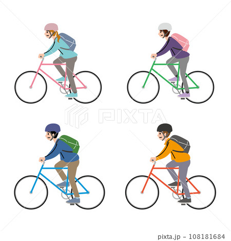 カジュアルな格好で自転車にのる若者たち