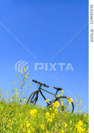 春の風景・自転車と菜の花と青空