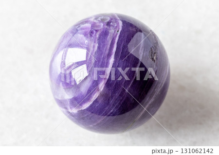 ball from charoite mineral on white marble