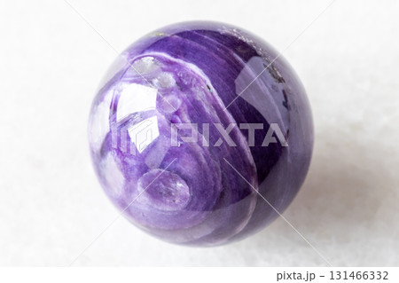 polished ball from charoite rock on white marble