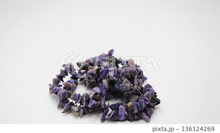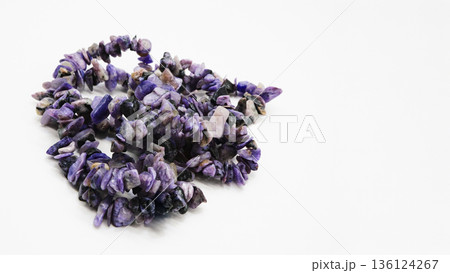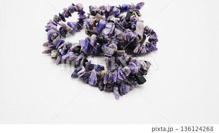 Natural gemstone purple charoite isolated on white background