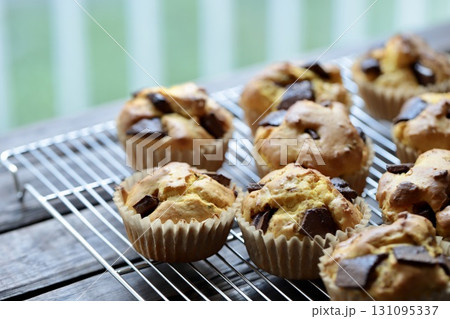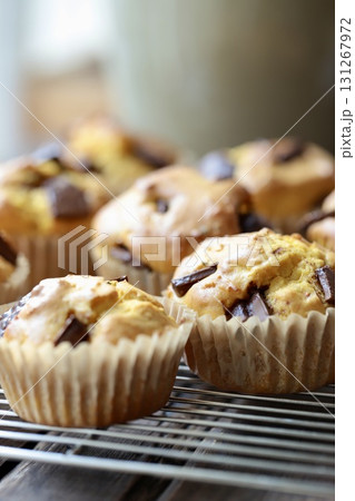 家で焼いたチョコレートチャンクかぼちゃマフィン